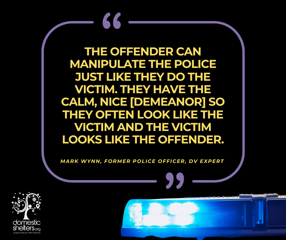 “The offender can manipulate the police just like they do the victim,” says Wynn. “They have the calm, nice [demeanor] so they often look like the victim and the victim looks like the offender.” But then, says Wynn, things can rapidly change when the abuser realizes this ploy won’t work.