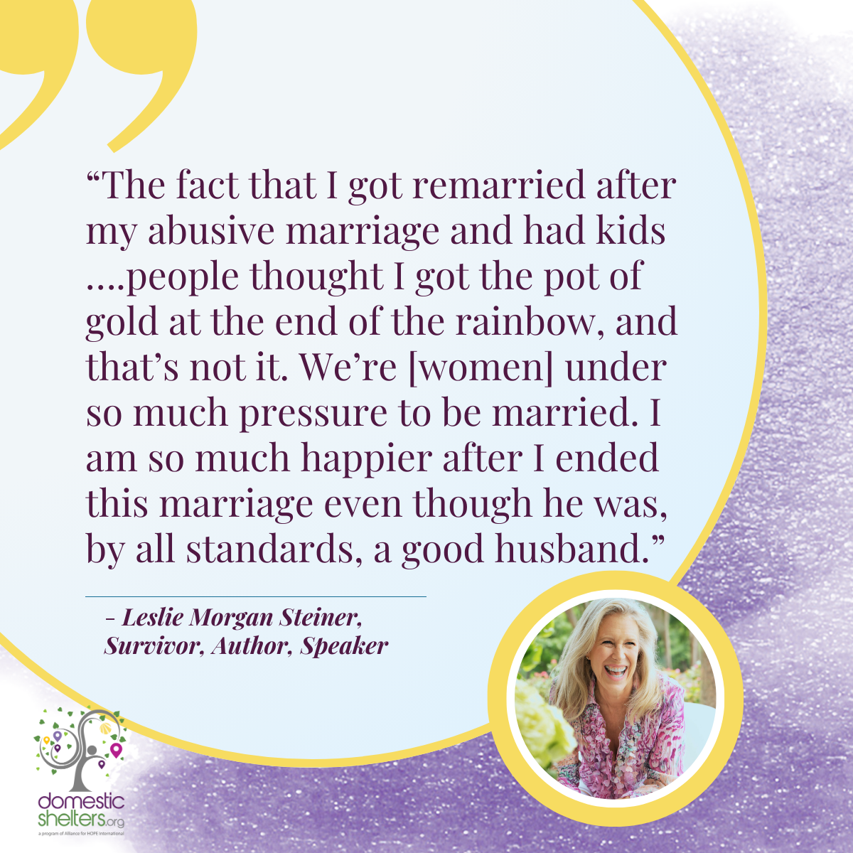 “The fact that I got remarried after my abusive marriage and had kids ….people thought I got the pot of gold at the end of the rainbow, and that’s not it. We’re [women] under so much pressure to be married. I am so much happier after I ended this marriage even though he was, by all standards, a good husband.”